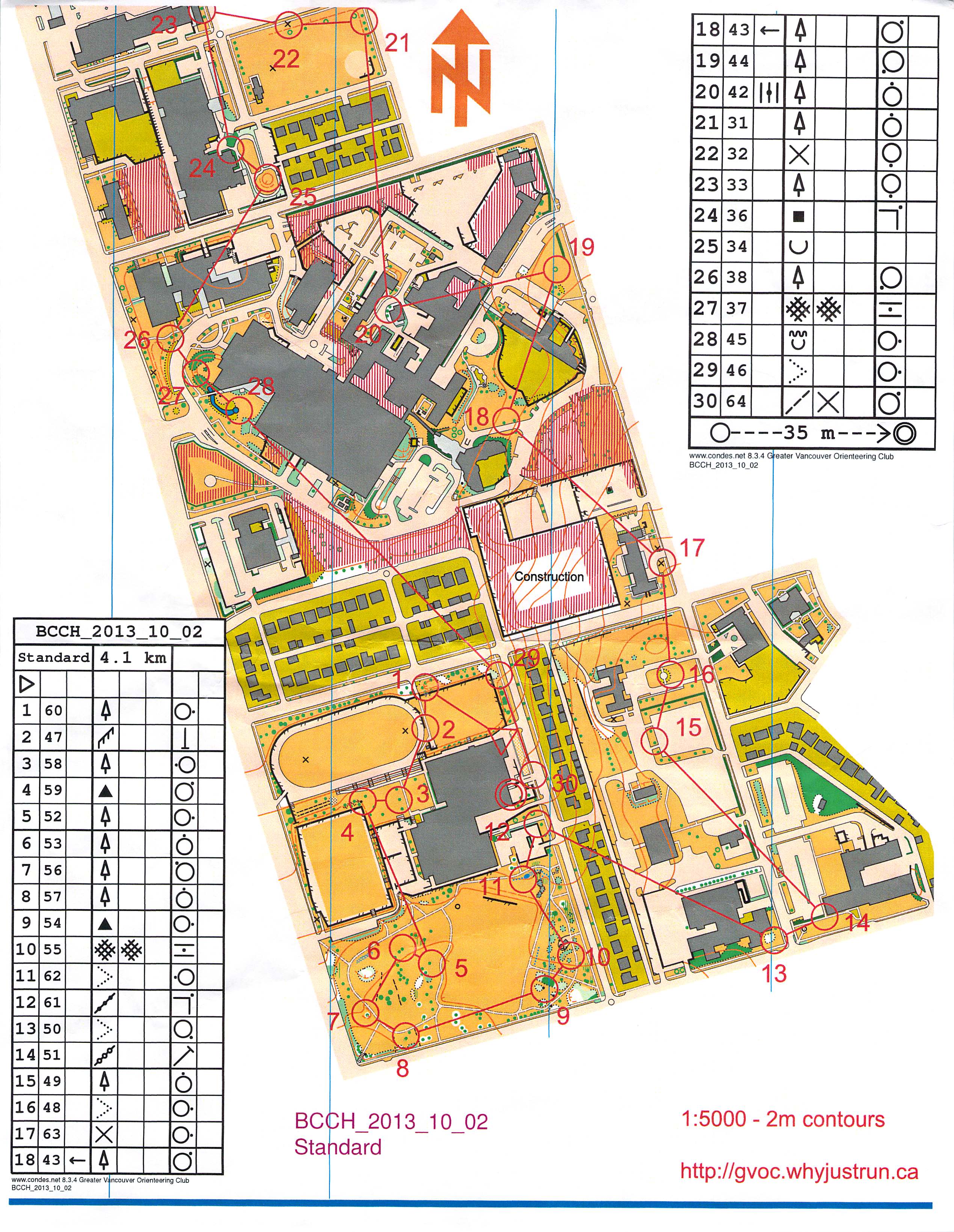 This weeks training event features control picking around Eric Hamber Secondary and BC Children's Hospital. Many controls on a small map. There is more construction than usual around the hospital, but the course has been set to avoid most of that.