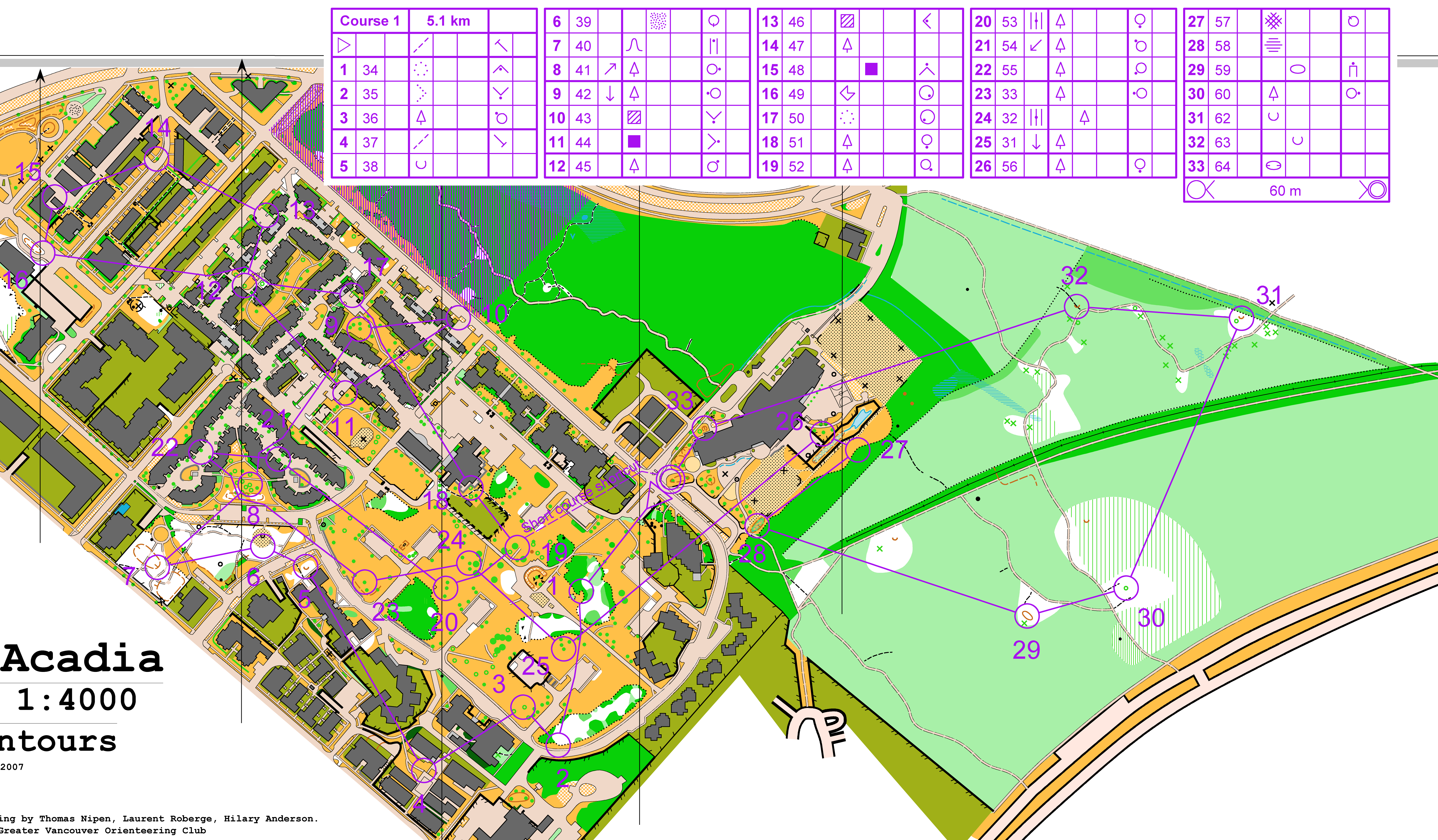 We offer a 5-6 k course with an option of cutting the course short to 3 k (the short-cut option is printed on the map). The course is 80% grass/pavement in the residential and park areas of Acadia and 20% on forest trails in Pacific Spirit Park. Regular running shoes and clothes will be sufficient.