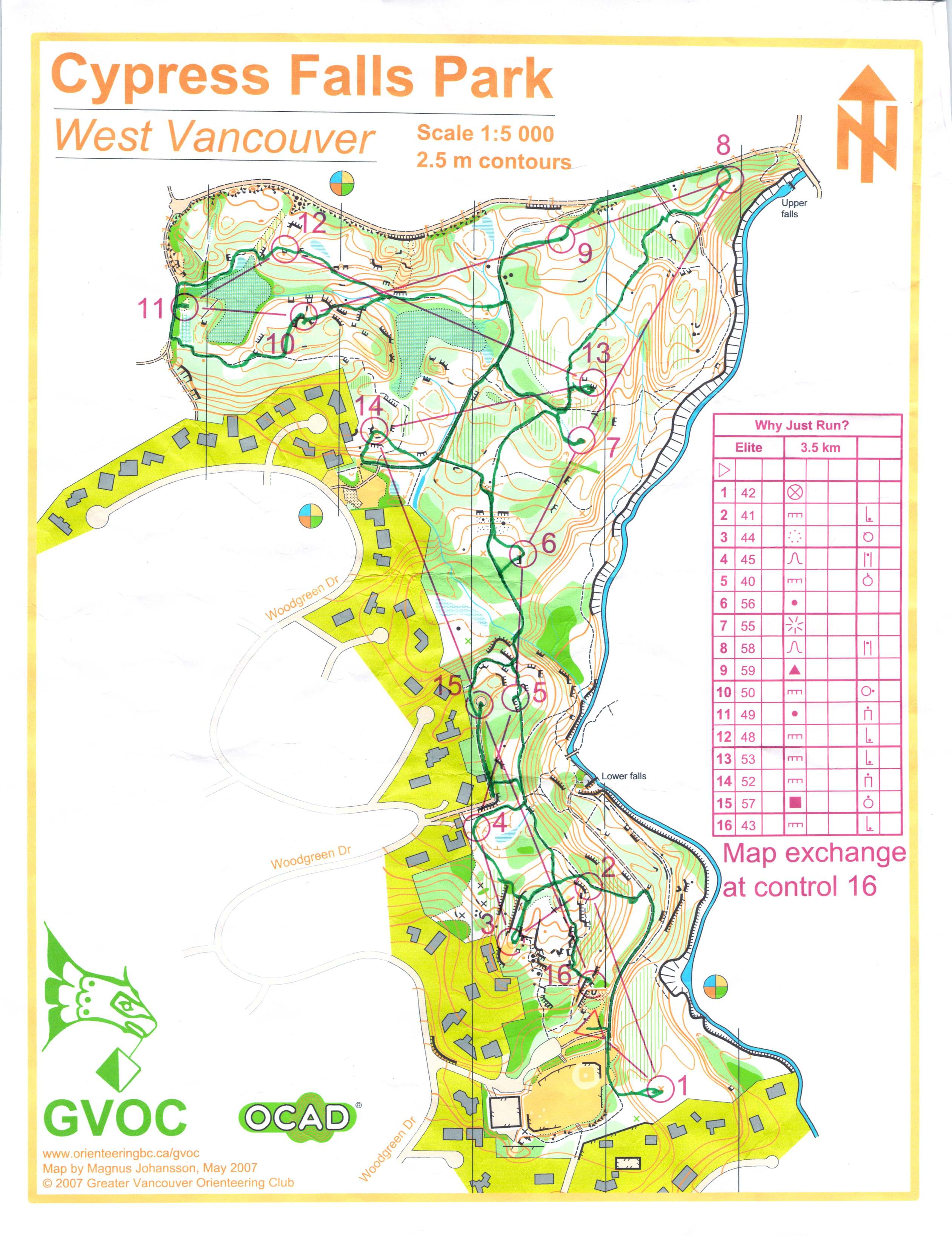 Continuing on this months theme of Forest Orienteering the Why Just Run for June will be held at Cypress Falls Park in West Vancouver. This is a small wooded park with a number of trails however the courses will be technical.