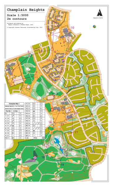 Park in the Champlain Heights Community Centre parking lot. Start is 10m West of the Community Centre.