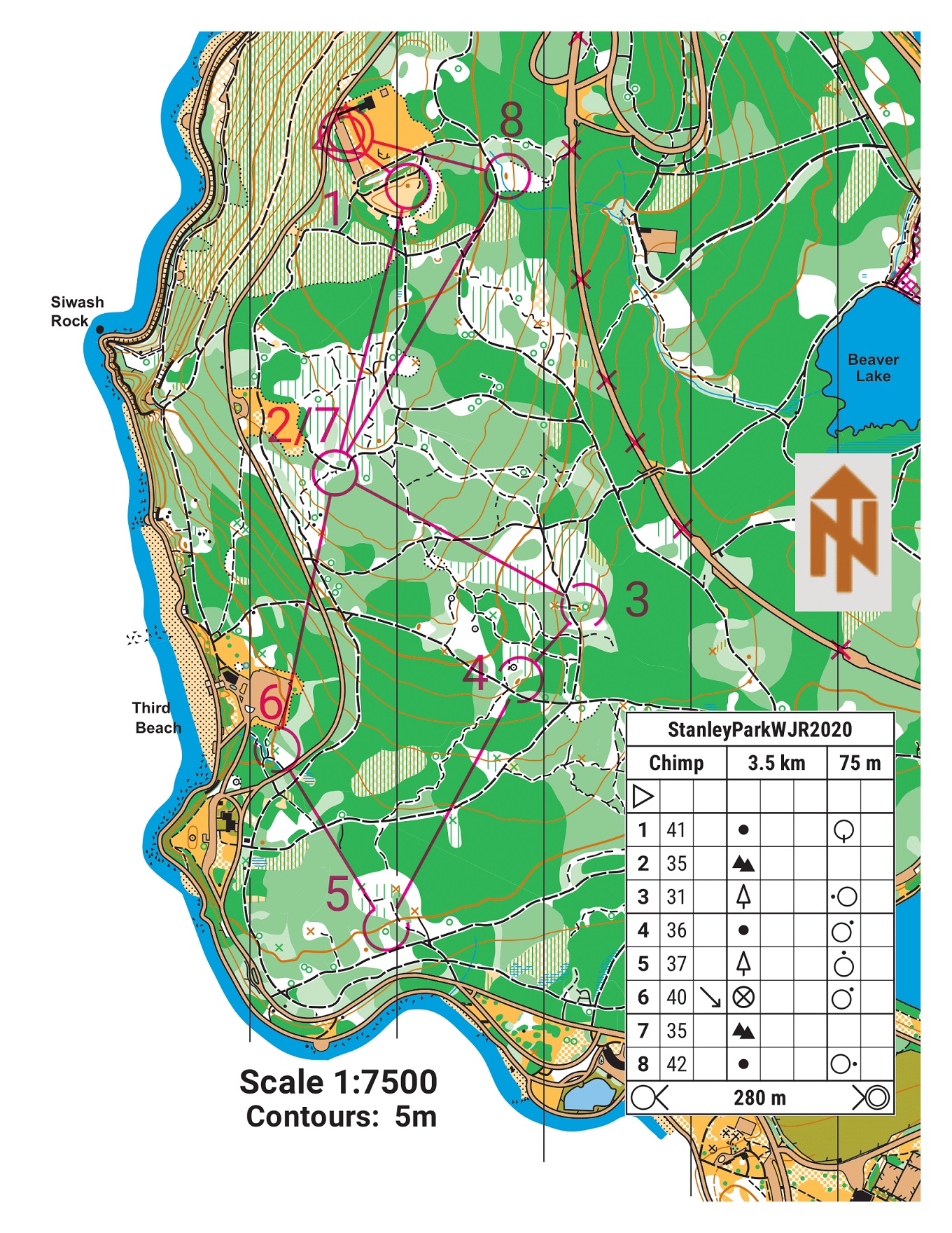 - (Bonus) Chimp: 3.5km, 70m climb, For a taste of the Elite course without the distance. Can be done on its own or after Bonobo & a break for instance. Expert Level. Maps is 1:7500. Note different parking location for this course, at Prospect Point picnic area.