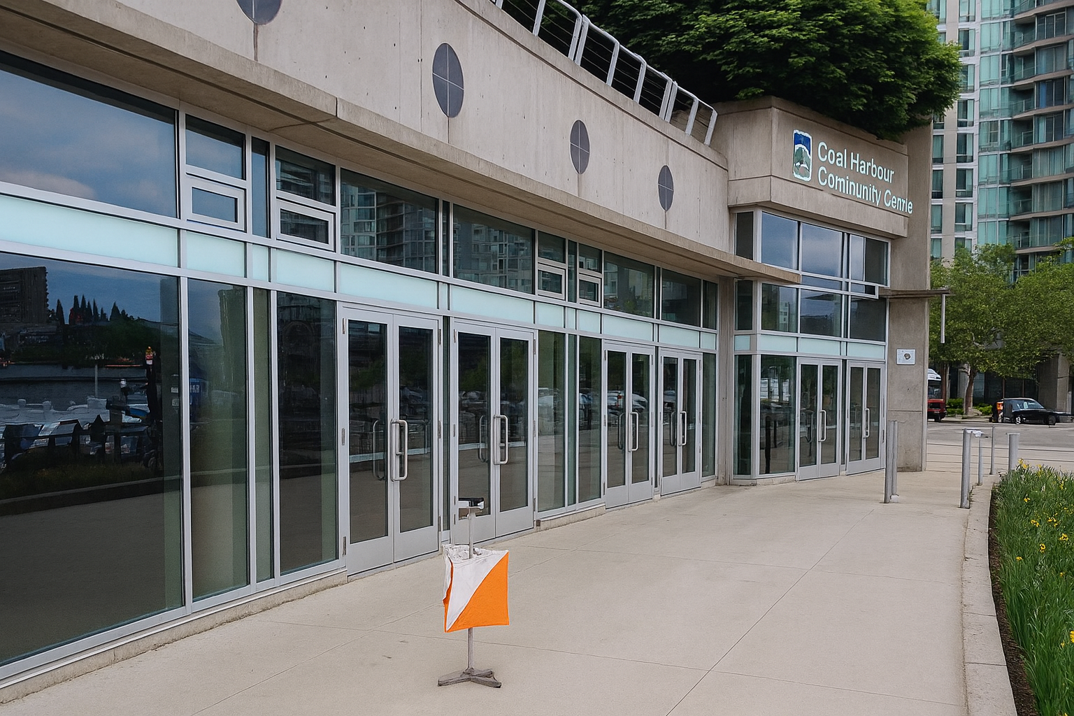 Coal Harbour Community Centre is a 10 minute walk from Burrard Skytrain Station. There is some free parking on both sides of Cordova St between Bute and Jervis.