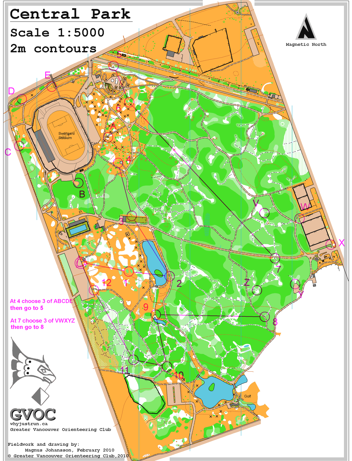 The standard course will be approx 4.5km in total (short option available), a point-to-point featuring two 3-of-5 sections. After visiting control 4, you then choose 3 out of a choice of 5 possible controls A,B,C,D or E, before heading to control number 5. Check this out for more on what to expect: http://news.worldofo.com/2012/01/15/route-choice-puzzle-choose-5-of-7/