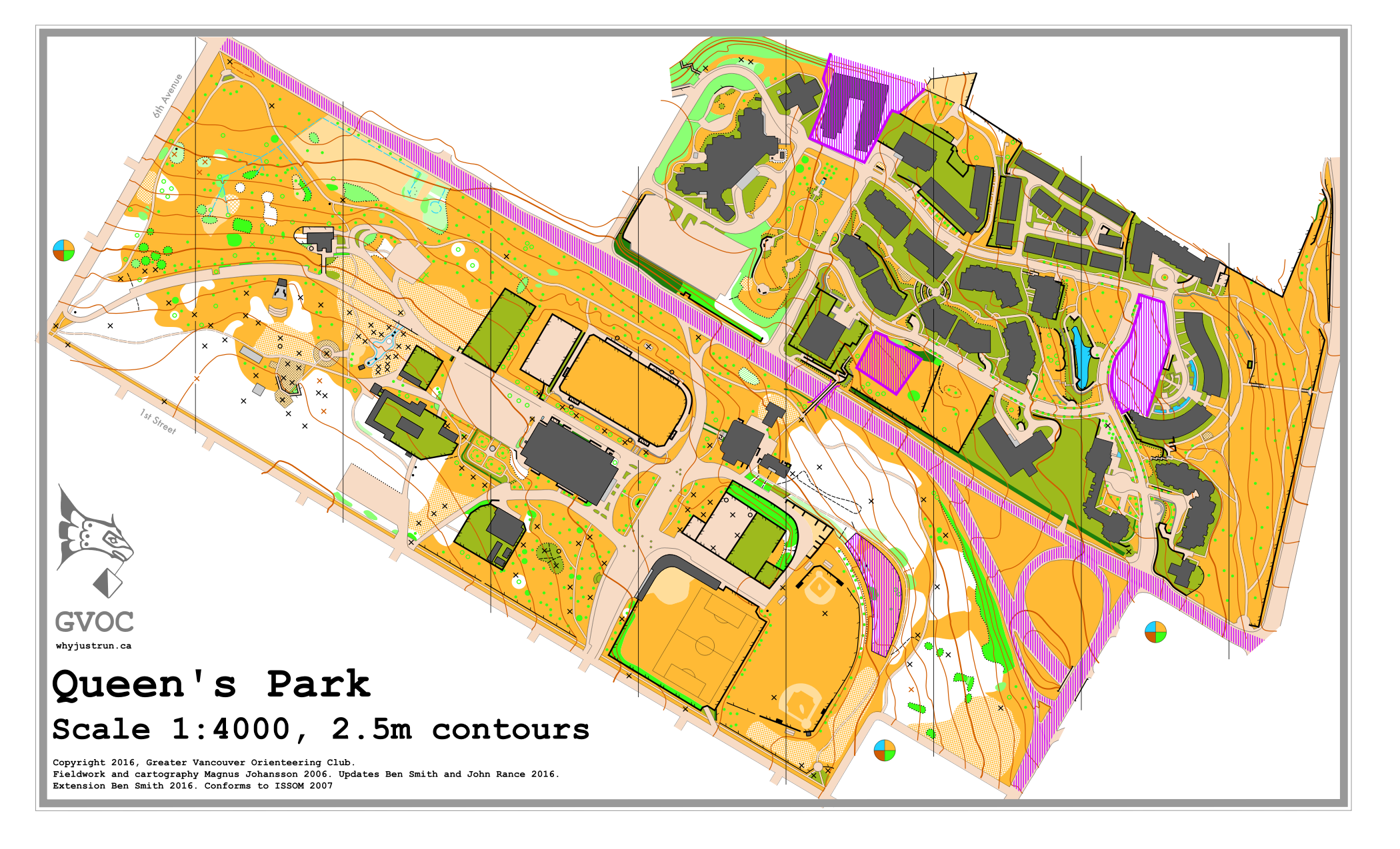 - An older 1:7500 tabloid size map can be downloaded from Queens_Park.ocd. This map extends beyond the main park in all directions.
